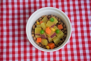 ②ミックスベジタブルとさつまいもを混ぜる