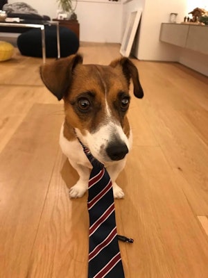 レオレアスタッフの友人ワンコ・アビーちゃんは、毎朝お気に入りのネクタイを着用してから仕事に取り掛かります。