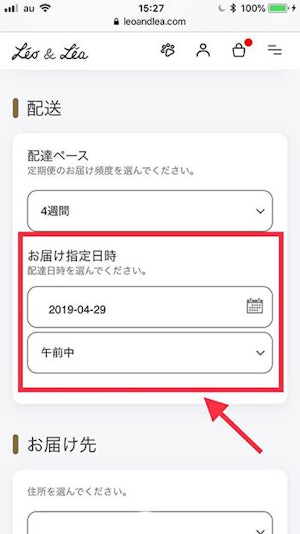 たとえば、まだまだフードがあるけど、一週間後には3袋届いてしまう! そんなときは、お届け指定日時を変更して、2週間後に届くように指定することもできます。